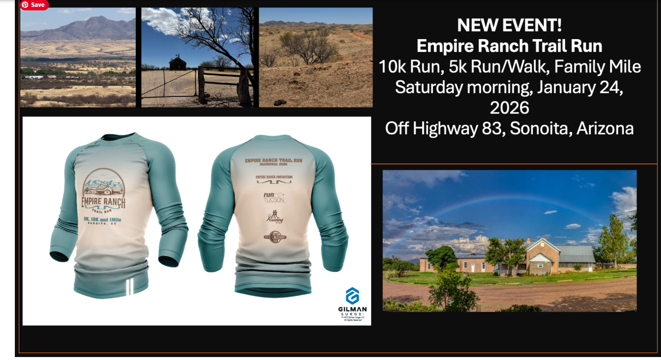 The Empire Ranch Headquarters E. Empire Ranch RoadSave the date for this exciting new run/walk event! Â The Empire Ranch Trail Run will include a 10k Trail Run, a 5k Trail Run/Walk, and a 1 mile family-friendly trail walk/run. Produced by Run Tucson in partnership with the Empire Ranch Foundation and the Bureau...
